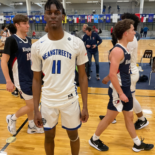 Daniel Johnson, Meanstreets 17U EYBL(IL)- 6'7" guard looks recovered from an injury that kept him out most of the high school season. He had 19 points on Sunday in win over Kingdom Hoops. Scores in a variety of ways, on drives to the basket, and pull-up jumpers form mid range. Hit only one three pointer in this game. Prototypical wing. Plays for Whitney Young(Chicago).