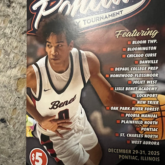 Benet Academy (Lisle) FINALLY wins Pontiac Holiday Tournament in their fourth consecutive year in title game. Head Coach Gene Heidkamp was 0-5 in title games. Last Spring he won the Class 4A State title in his third try. Perseverance by him and his team. Congrats.